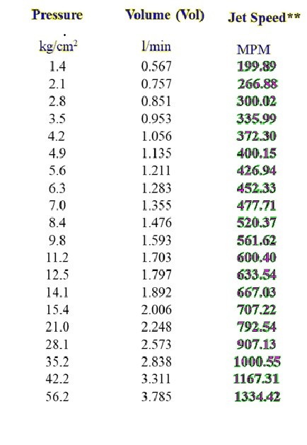 a. Volume (l/min), b. Jet Speed (MPM),