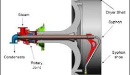 - Steam enters dryer cylinders via rotary joints