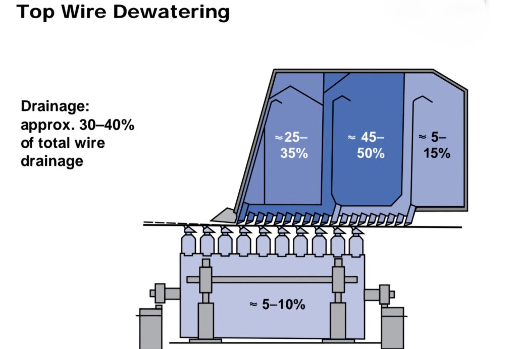 This profile ensures controlled dewatering — avoiding too‑fast initial drainage (which harms formation) but still achieving a good dryness before next section.