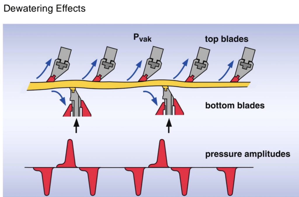5. Pressure pulses by bottom shoe (bottom Blades) improve fiber distribution and formation.